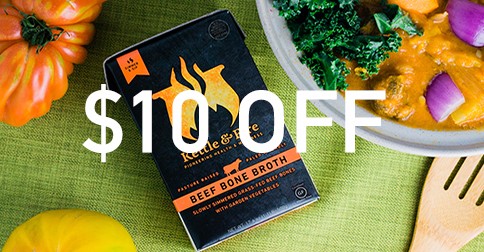 I just discovered Kettle & Fire bone broth. Here's a coupon for $10 off your first order! Just click the link to get your coupon.
